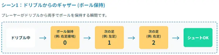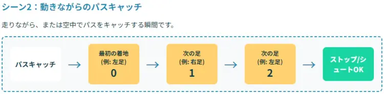 しかし、この0ステップの導入により、ボールを保持した瞬間は「0歩目」、その次に踏み出す足が「1歩目」、さらに次の足が「2歩目」と数えられるようになったのです。